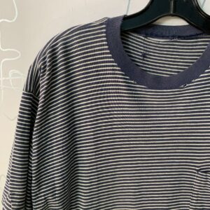 AS-IS THIN STRIPED DISTRESSED PAPER THIN CREW NECK POCKET RINGER TEE SINGLE STITCHED T-SHIRT