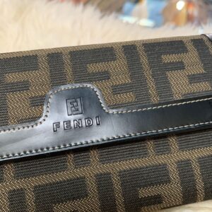 FENDI FF ZUCCA PRINT CONTRAST STITCH LEATHER TRIM WALLET
