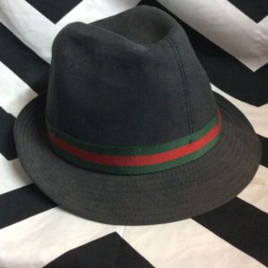 GUCCI FEDORA HAT W/ MONOGRAM LINING & LEATHER BADGE