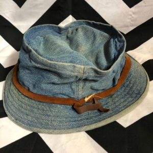 BUCKET HAT DENIM W/ SUEDE LEATHER TRIM/BAND