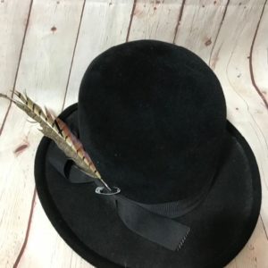 VELVET HAT W/ RIBBON BAND & FEATHER