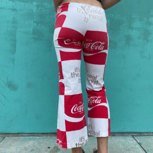 AS-IS AWESOME 1970S CHECKERED COCA COLA DRAWSTRING FLARE COTTON PANTS