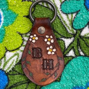 CUTE! 1970S EMBOSSED & HAND-PAINTED LEATHER KEYCHAIN B.H. INITIALSRead more