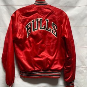 YOUTH SIZED NBA CHICAGO BULLS SATIN BUTTON UP JACKET WITH BULLS LOGO ON BACK