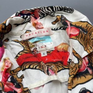 WILD! ALLOVER PIN-UP & TIGER PRINT SHORT SLEEVE BUTTON DOWN BLOUSE