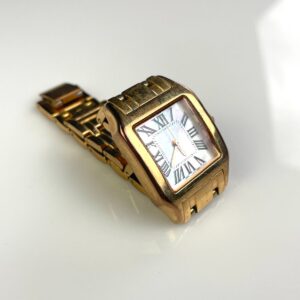 HIGH POLISHED ITALIAN BRONZE CARTIER PANTHERE STYLE WATCH, ABALONE FACE
