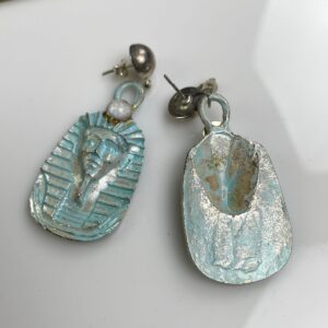 RAD! 1990S DEADSTOCK OXIDIZED KING TUT PENDANT EARRINGS