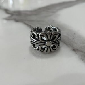 ORNATE FLORAL KELTIC CROSS STYLE STAINLESS STEEL SILVER BAND RING9Read more