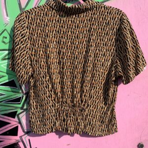 CUTE! 1990S CROPPED EARTHTONE RAYON BUTTON DOWN BOXY TOP SHELL BUTTONS