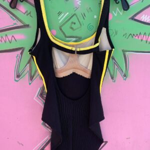 RAD RIBBED 1980S ONE PIECE BATHING SUIT YELLOW STRIPES