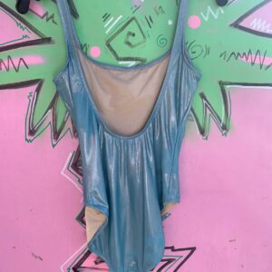 KILLER! METALLIC BLUE STRAPPY & OPEN BACK ONE PIECE BATHING SUIT/ BODYSUIT