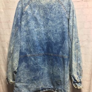 1980S ACID WASH ZIPPER DENIM JACKET TRENCH LENGTH SUPER RAD!