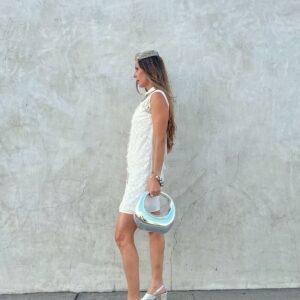 *AS-IS* CUSTOM LV MONOGRAM LACE SLEEVELESS SHIFT DRESS WITH PEARL BUTTONS