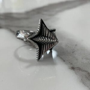 RAD 3-D CARVED NAUTICAL STAR ORNATE CARVED STAINLESS STEEL SILVER BIKER RING