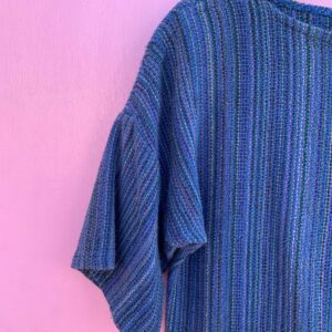 MULTI COLORED VERTICAL STRIPED BOXY WIDE NECK HAND WOVEN KNIT TOP