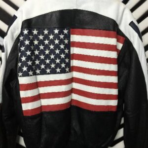 LEATHER BOMBER JACKET AMERICAN FLAG BACK USA AS-IS