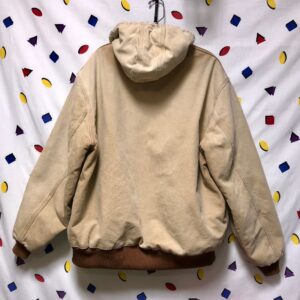CLASSIC ZIP-UP HOODED WORK JACKET ELASTIC WAIST QUILTED LINING
