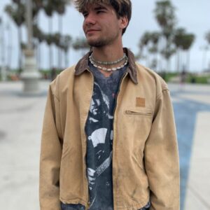 AS-IS KHAKI CHORE JACKET W/ CORDUROY COLLAR AND WOOL INNER LINING