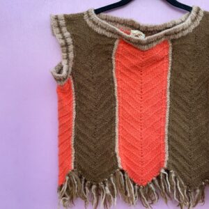FUN! RETRO HEAVY WOOL STRIPED CAP SLEEVE KNIT SWEATER TOP FRINGE TRIM