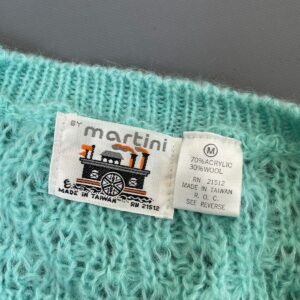 CUTE! DEADSTOCK 1980S AQUA SUPER LOOSE KNIT WOOL BLEND CARDIGAN SWEATER