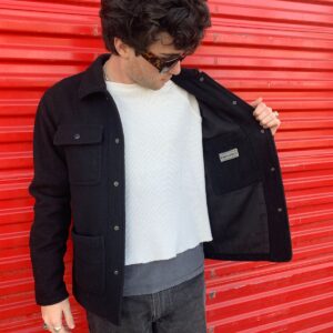 HEAVY WOOL FLANNEL JACKET BLUE SHERPA LINED ANCHOR BUTTONS