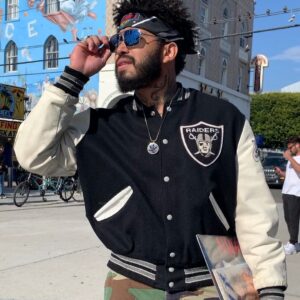 *AS-IS* LEATHER & WOOL RAIDERS VARSITY STYLE LETTERMAN JACKET