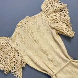 GORGEOUS! 1970S LASER CUT WOOL DRESS NETTED FLUTTER SLEEVES