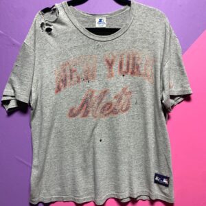 *AS-IS* HEAVILY DISTRESSED NEW YORK METS LOGO RIBBED COLLAR T-SHIRT