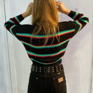 AMAZING NEON STRIPED CROPPED KNIT SWEATER SMALL FIT