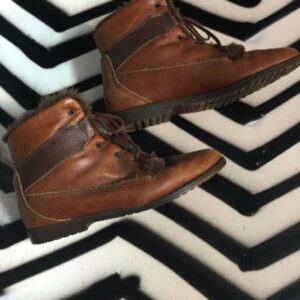 LACE-UP LEATHER ANKLE BOOTS W/FAUX FUR LINING