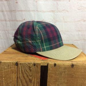 PLAID DESIGN HAT W/ SOLID BRIM & ADJUSTABLE LEATHER STRAP