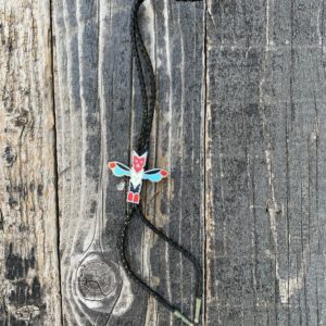 BOLO TIE ZUNI FEATHER HEADDRESS W/ MIX STONE & SILVER