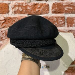 3-44 WOOL EMBROIDERED GREEK FISHERMAN\\S CAP W/ BRAIDED SATIN STRAP