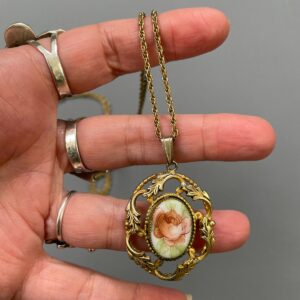 *AS-IS* PAINTED FLORAL CAMEO PENDANT ORNATE SETTING