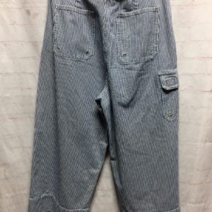 STRIPED SEARSUCKER JEANS W/ CROPPED WIDE LEG & CARGO POCKET