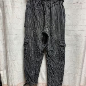 PIN STRIPED LINEN LOOK BEACH PANTS W/ CARGO POCKETS