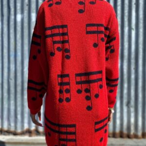 ADORABLE 1980S MUSIC NOTE KNIT SWEATER LONGER CUT