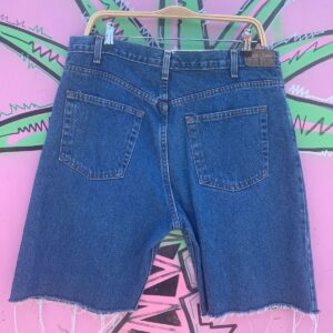 CLASSIC 1990S ZIP UP FLY DENIM DAD JEANS DARKER WASH CUT OFF SHORTS