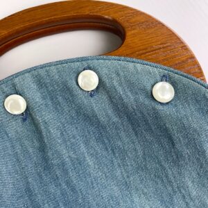 RETRO HANDMADE DENIM & SOLID WOOD HANDLE BAG, PEARLY BUTTONED HIDDEN POCKETS