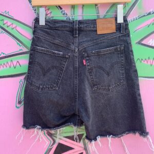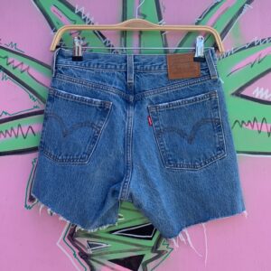 LEVIS “RIBCAGE” SUPER HIGH WAIST STRETCH DENIM SHORTS, LONGER CUT