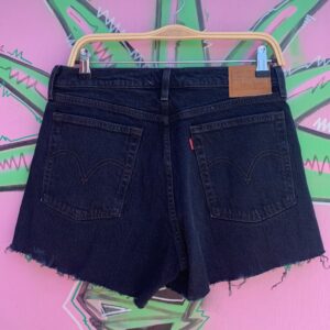 BLACK DENIM “WEDGIE” FIT CUT OFF SHORTS