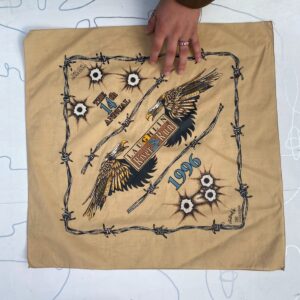 LAUGHLIN RIVER RUN 1996 BANDANA W/ BARBED WIRE, BULLET HOLES AND BALD EAGLES