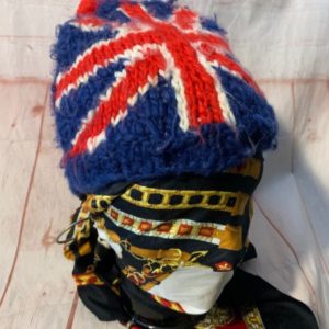 UNION JACK DESIGN KNIT BEANIE W/ POM POM ON TOP