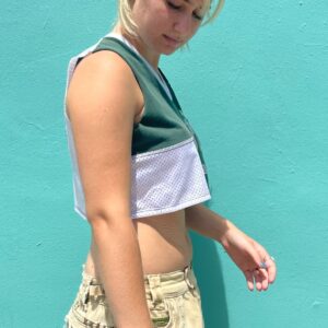 1 OF 2 NEW YORK JETS REPURPOSED PATCHWORK JERSEY V-NECK CROP TOP