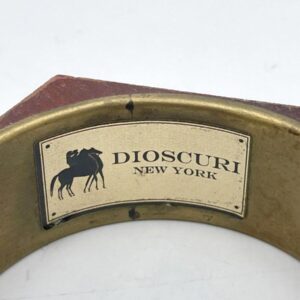 VINTAGE STAINED WOOD & BRASS CARVED GEOMETRIC BANGLE BRACELET