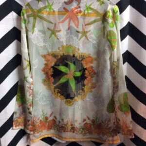 SHIRT – OPEN FRONT – SHEER – SHELL PATTERN PRINT