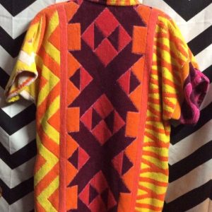 1970S CARDIGAN SWEATER – OPEN FRONT – AZTEC DESIGN
