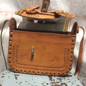 PURSE W/ WOODEN HORSE SADDLE & ENGRAVED