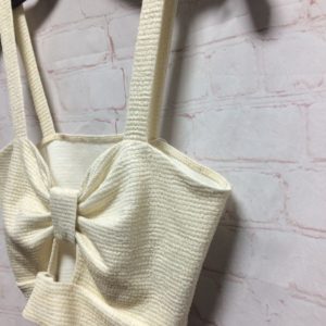 CROP-TOP W/ METALLIC FABRIC & FRONT CUT-OUT UNDER BOW ON CHEST