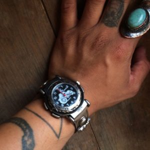 CHUNKY VINTAGE WATCH HEAVY LEATHER STRAPS MOTORCYCLE GRAPHIC SILVER HARDWARE BOY LONDON